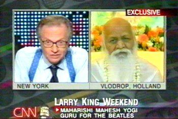 KING: Gebt mir eine Pause, dann kehren wir gleich zurück mit Maharishi Mahesh Yogi in dieser Ausgabe von Larry King Live – einem der großen spirituellen Führer in der Welt. Geht nicht weg ...